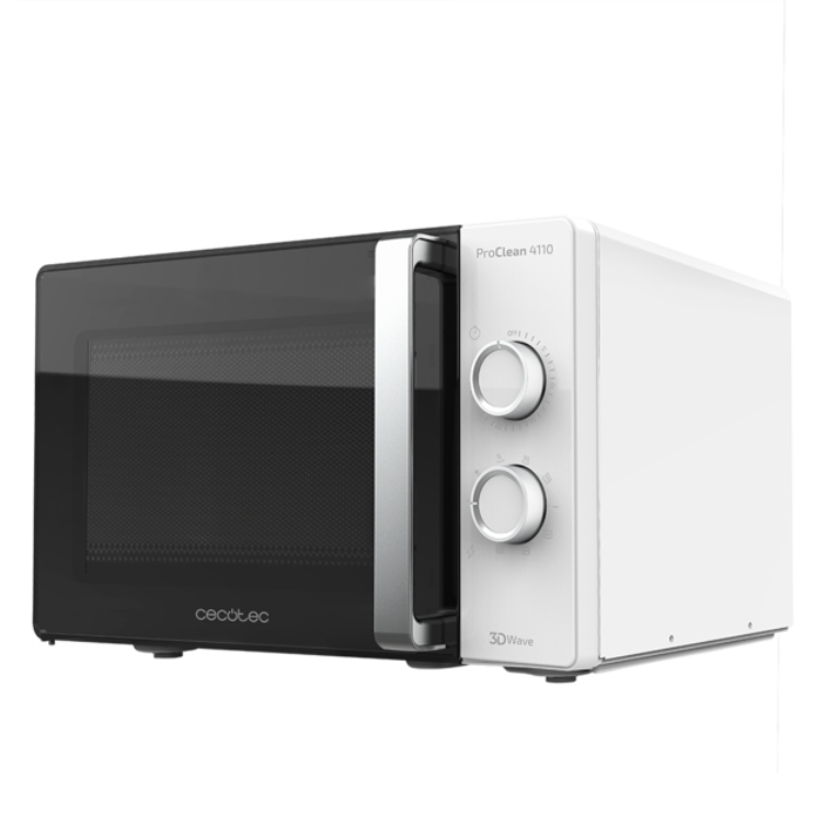 Cecotec Microondas Plateado ProClean 4110 con Grill con Revestimiento Ready2Clean para una mejor limpieza. Tecnología 3DWave, 700 W y Grill 800 W. 23 l, Diseño elegante con Puerta FullCrystal.
