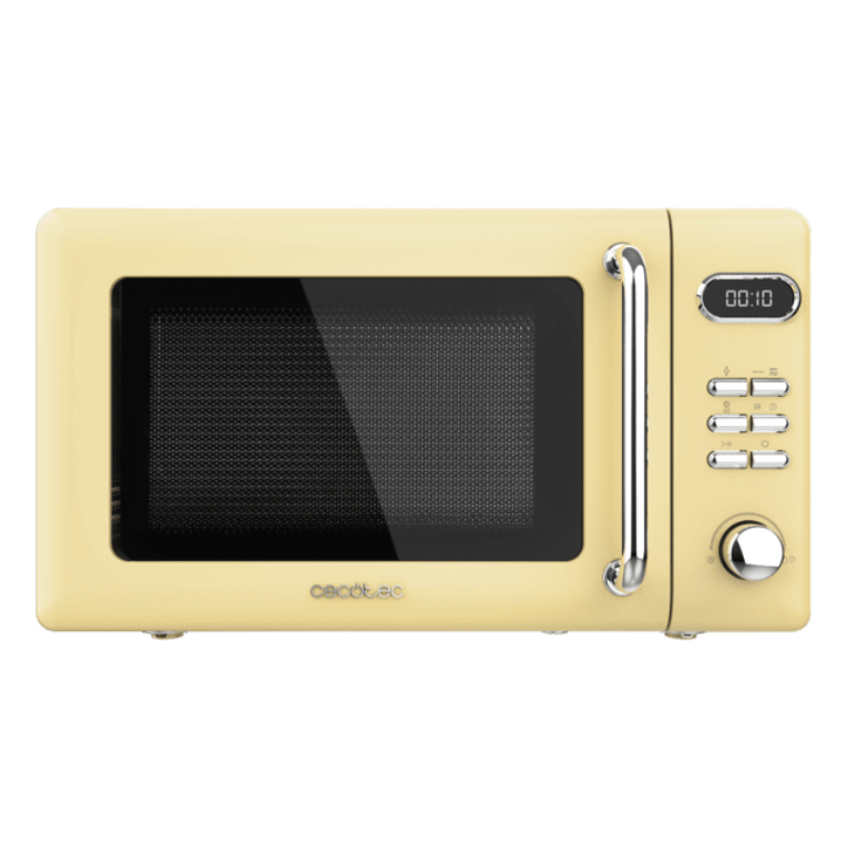 Cecotec 01713. Tipo de instalación: Encimera, Tipo de producto: Microondas con grill, Capacidad interior: 20 L, Potencia del microondas: 700 W, Pantalla incorporada, Tipo de control: Botones, Giratorio, Color del producto: Amarillo
