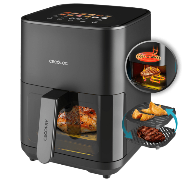 Cecofry&Grill Duoheat 4000 Air fryer Freidora de aire con doble resistencia para dorado perfecto y sabor de parrilla en carnes, capacidad de 4 litros y potencia de 1900 W para platos saludables.