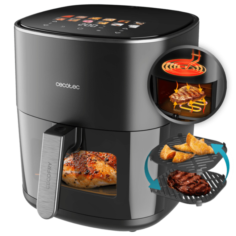Cecotec Cecofry&Grill Duoheat 6500 Sencillo 6,5 L Independiente 2200 W Freidora de aire caliente Negro