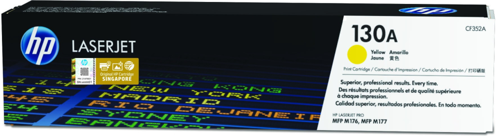 HP Cartucho de tóner original LaserJet 130A amarillo. Rendimiento de impresión de tóner de color: 1000 páginas, Colores de impresión: Amarillo, Cantidad por paquete: 1 pieza(s)
