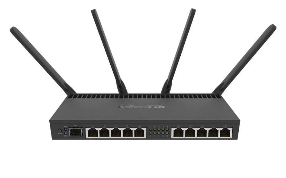 Mikrotik RB4011iGS+5HacQ2HnD-IN. Banda Wi-Fi: Doble banda (2,4 GHz / 5 GHz), Estándar Wi-Fi: Wi-Fi 5 (802.11ac), Tasa de transferencia de datos WLAN (máx.): 1733 Mbit/s. Tipo de interfaz Ethernet LAN: Gigabit Ethernet, Ethernet LAN, velocidad de transferencia de datos: 10,100,1000 Mbit/s. Tipo de producto: Router de sobremesa, Color del producto: Negro. Diseño de la antena: Externo. Modelo del procesador: Annapurna Labs Alpine AL21400, Frecuencia del procesador: 1400 MHz