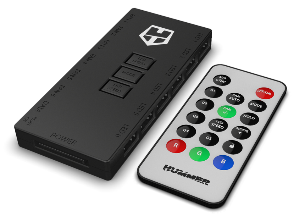 Con el controlador Nox Hummer R-HUB podrás sincronizar seis ventiladores y hasta seis dispositivos ARGB. Este controlador con mando a distancia te permitirá regular la velocidad y los efectos de iluminación de los ventiladores de tu equipo. Totalmente compatible con las mejores marcas de placas base del mercado, como las tecnologías Mystic Light Sync de MSI, RGB Sync de GIGABYTE o Aura RGB Sync de Asus, Nox Hummer R-HUB es la gran solución para controlar la iluminación de todo tu setup al completo.