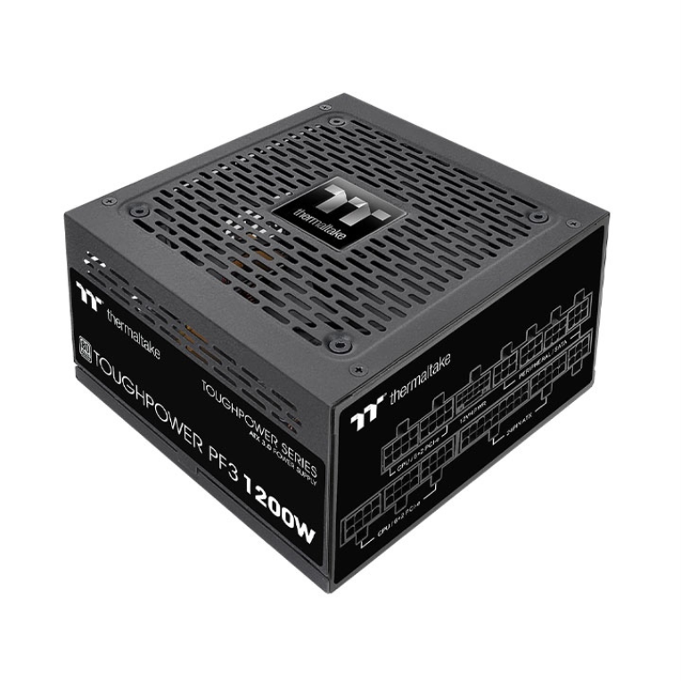 Thermaltake Toughpower PF3. Potencia total: 1200 W, Voltaje de entrada AC: 100 – 240 V, Frecuencia de entrada AC: 50/60 Hz. Alimentador de energía para tarjeta madre: 24-pin ATX, Longitud del cable de alimentación de la placa base: 60 cm, Longitud del cable de alimentación SATA: 150,500 mm. Utilizar con: PC, Factor de forma de fuente de alimentación (PSU): ATX, Certificación 80 PLUS: 80 PLUS Platinum. Color del producto: Negro, Tipo de enfriamiento: Activo, Diámetro de ventilador: 12 cm. Ancho: 140 mm, Profundidad: 150 mm, Altura: 86 mm