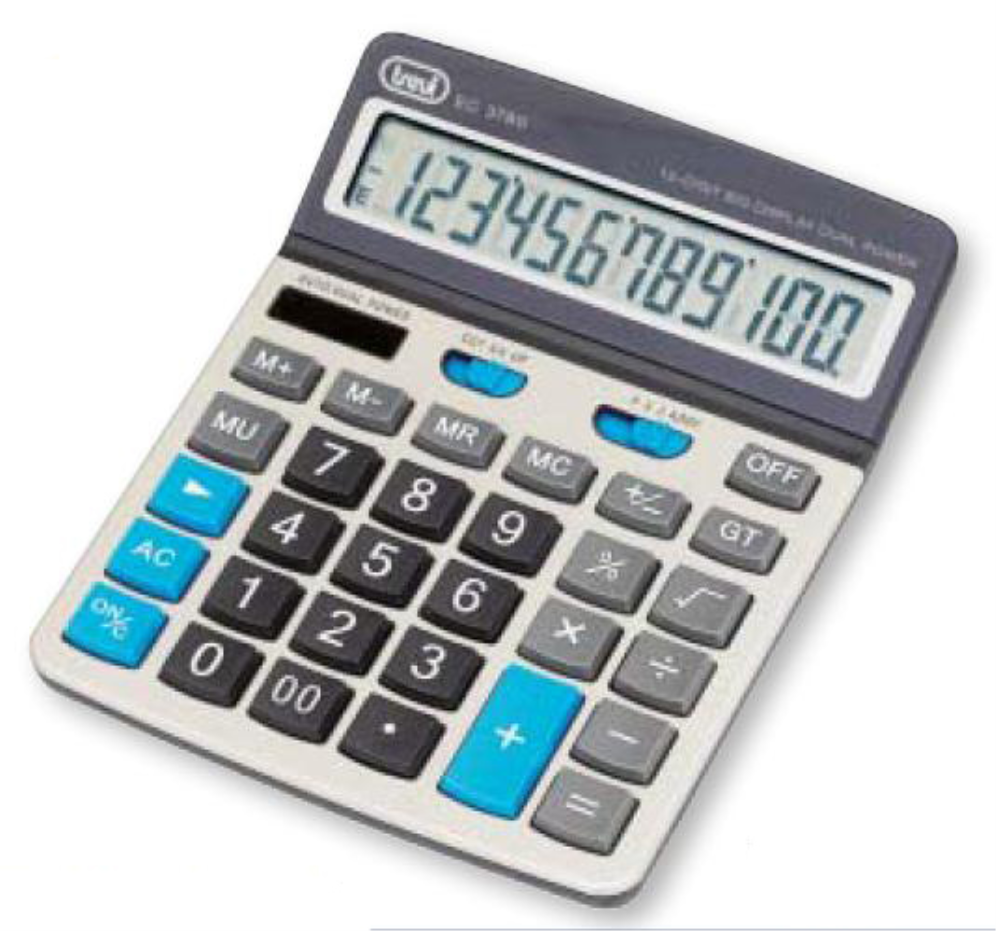 Trevi EC 3780. Factor de forma: Escritorio, Tipo: Calculadora básica. Dígitos: 12 dígitos, Número de caracteres en pantalla: 12. Fuente de energía: Batería/Solar. Color del producto: Gris