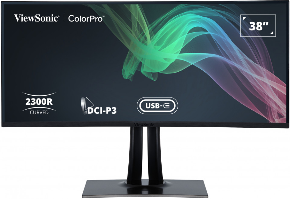 Viewsonic VP3881A. Diagonal de la pantalla: 96,5 cm (38″), Resolución de la pantalla: 3840 x 1600 Pixeles, Tipo HD: Quad HD+, Tecnología de visualización: LED, Tiempo de respuesta: 5 ms, Relación de aspecto nativa: 21:9, Ángulo de visión, horizontal: 178°, Ángulo de visión, vertical: 178°. Altavoces incorporados. montaje VESA, Ajustes de altura. Color del producto: Negro
